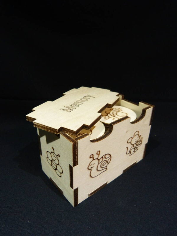 Vingt-quatre jetons des animaux de la nature dans leur boîte en bois.