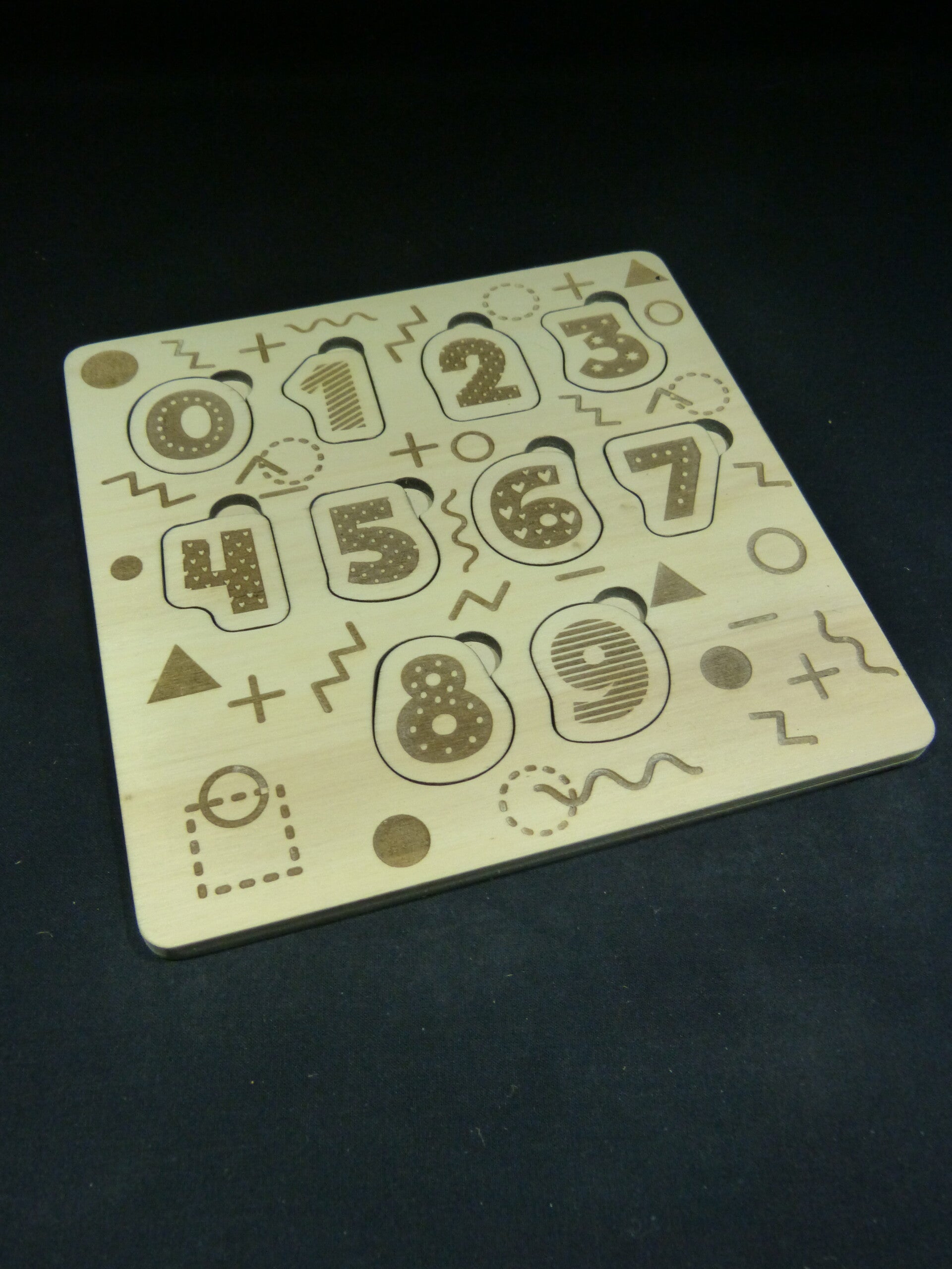 Apprendre en s'amusant : Puzzle accompagné de son support en bois. Chaque pièce mesure 0,5 cm d'épaisseur.