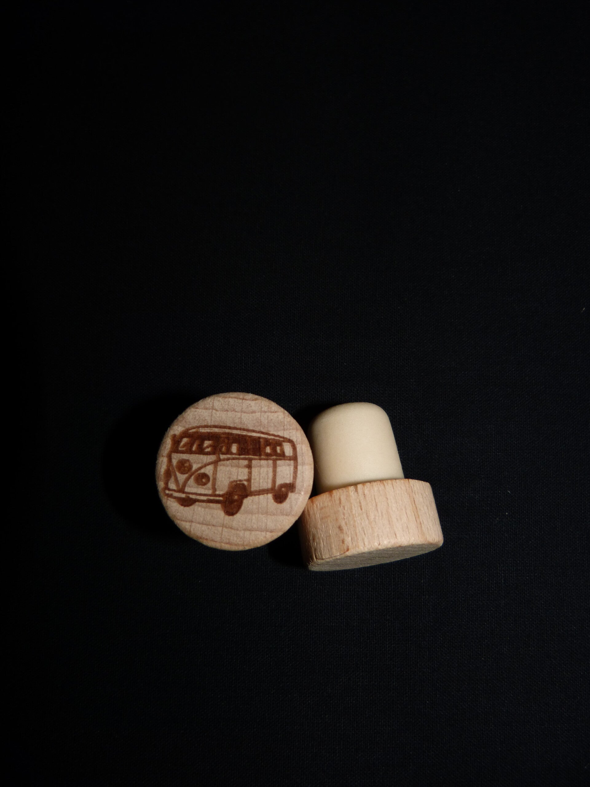 Un bouchon en hêtre personnalisé avec motif Combi.