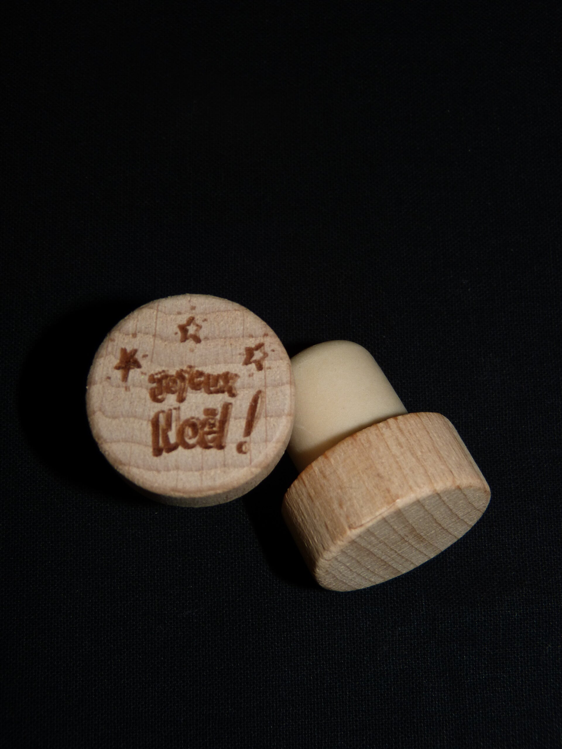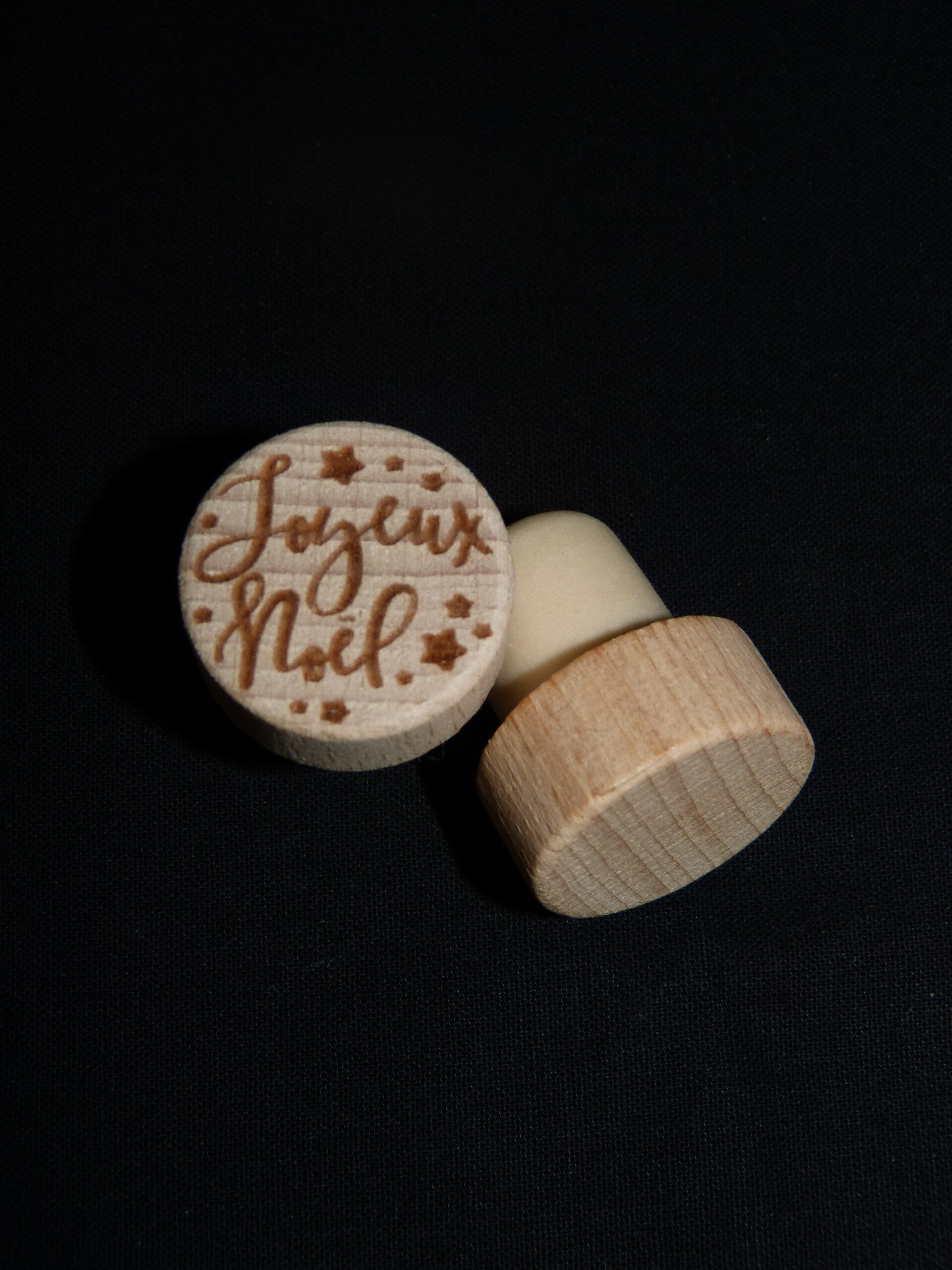 Un bouchon en hêtre personnalisé avec motif spécial Noël au choix.