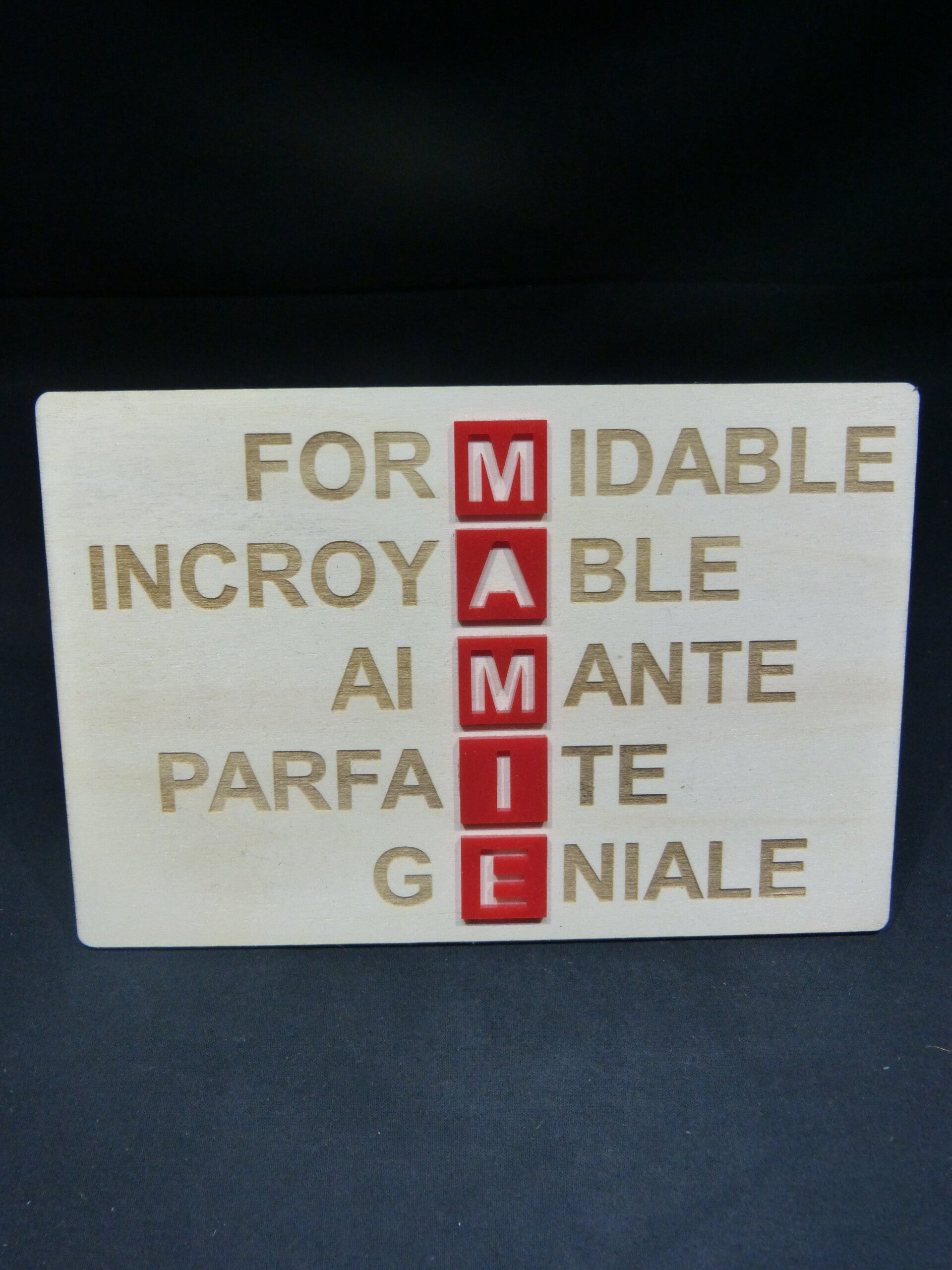 Une plaque pour Mamie avec un message attentionné.